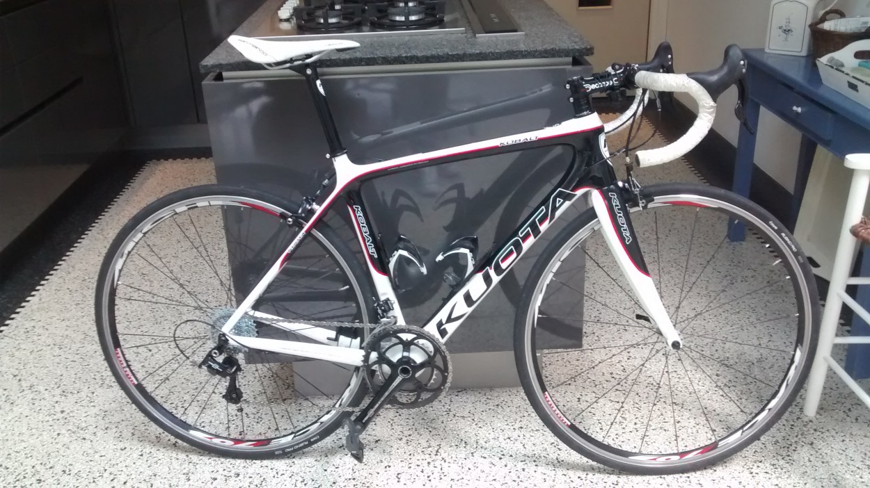 Van alle 1000 Italiaanse racefietsmerken heb ik dus een Kuota, de Ferrari onder de racefietsen. De bij ontwikkeling toegepaste Formule 1-technologie kon helaas niet voorkomen dat er een minimale speling zat tussen de platte zadelpen en het frame, wat zorgde voor scheurtjes in het frame. Vrij snel werd er vanuit Kuota een nieuw frame geleverd en in slechts een uur was alles omgezet en had mijn fietsenmaker mijn nieuwe fiets opgebouwd. Helaas was het model waar ik ooit voor viel niet meer leverbaar en ik ‘moet’ het doen met een nieuw type, de Kobalt. Hè wat vervelend … nee, deze is zeker zo mooi, zo niet mooier. Een nieuw probleem met de zadelpen en het frame lijkt uitgesloten, maar Kuota blijft Kuota en dus hoop ik stiekem op een nieuw mankement waarna ik in 2017 weer een nieuwe fiets presenteer.